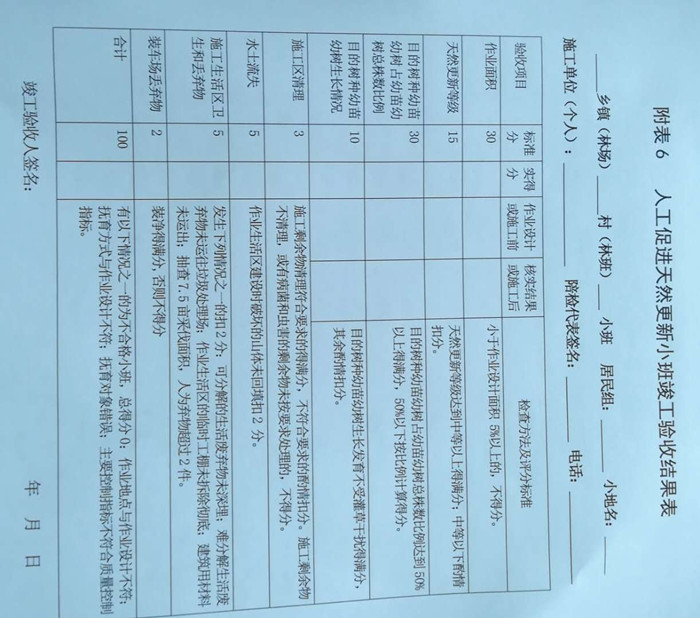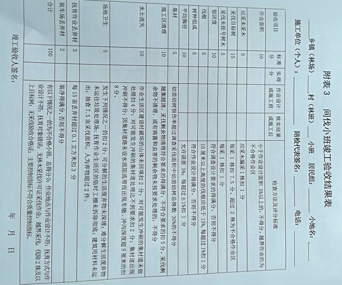第十四条 竣工验收外业工作要内外业结合进行,或外业结束后及时开展内业工作,整理资料,汇总数据,填写竣工验收各种表格,并按竣工验收质量控制指标和竣工验收表规定的标准,对小班作业质量等进行评价。