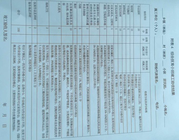 第十四条 竣工验收外业工作要内外业结合进行,或外业结束后及时开展内业工作,整理资料,汇总数据,填写竣工验收各种表格,并按竣工验收质量控制指标和竣工验收表规定的标准,对小班作业质量等进行评价。
