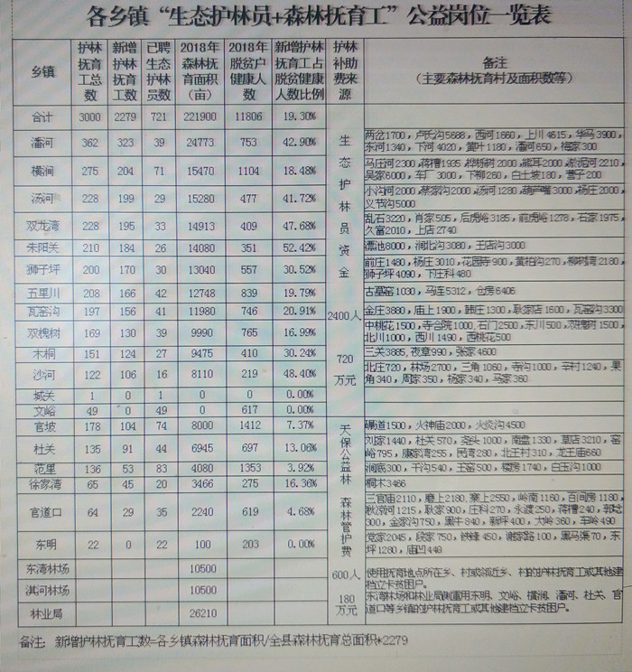附件:各乡镇"生态护林员+森林抚育工"公益岗位一览表