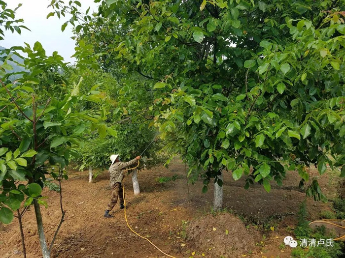 今年测报出的主要病害是核桃干腐病和炭疽病,虫害是黑小吉丁虫、核桃举肢蛾、桃蛀螟。防治时间:第一遍药防治时间:6月01日至6月10日;第二遍药防治时间:6月15日至6月25日;第三遍药防治时间:7月01日至7月10日。药品应用:用药选择菊酯类"真功夫(新功夫)"、"阿维菌素"、"多菌灵"。浓度"真功夫(新功夫)"1000倍,"阿维菌素"1000倍,"多菌灵"500倍。每亩施药量"真功夫"200ml,"阿维菌素"100ml,"多菌灵"2包。